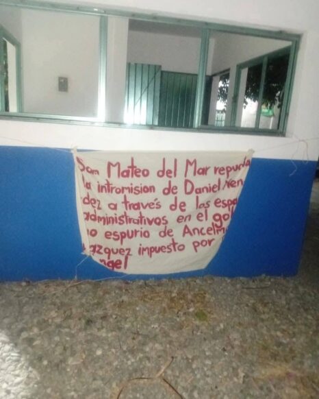San Mateo del Mar amaneció este día con mensajes de protesta visibles en distintos puntos de la comunidad, luego de que habitantes expresaran su inconformidad ante lo que consideran una intromisión ajena en los asuntos internos del municipio.