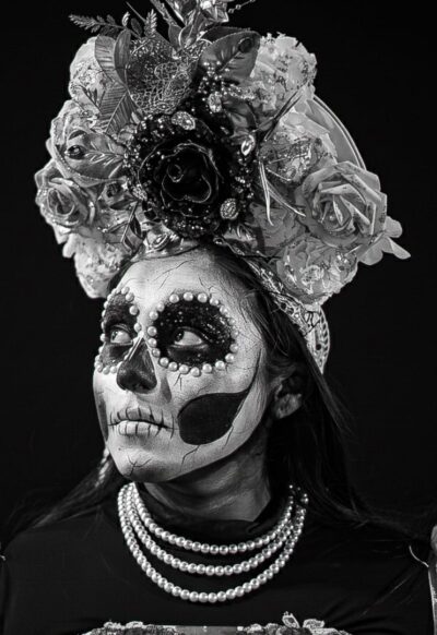 Cada noviembre, miles de mujeres se visten de catrinas para rendir homenaje a sus muertos. Con flores en el cabello, encajes, velos y maquillaje, se convierten en portadoras de una tradición que mezcla lo prehispánico y lo moderno, lo solemne y lo festivo.
